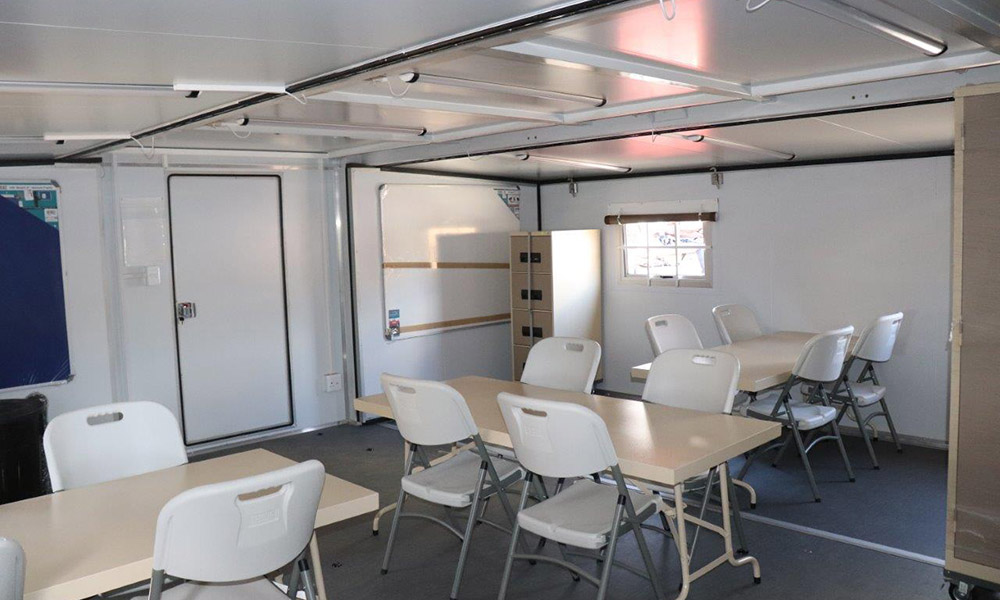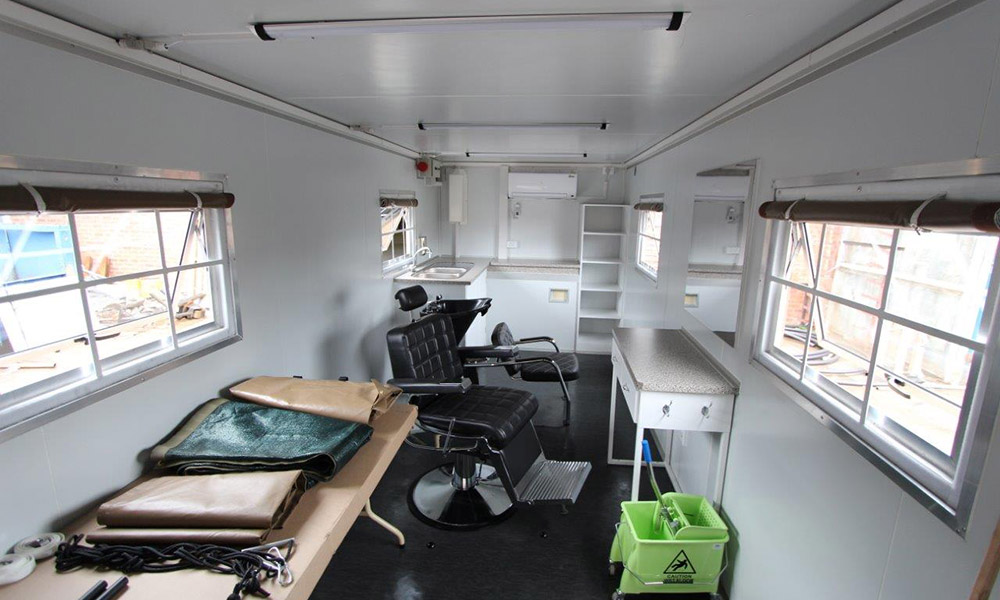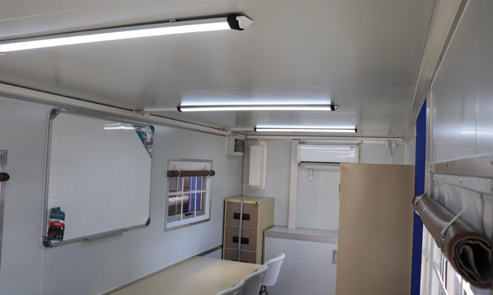 Typical configurations include open plan conference facilities, dormitory style accommodation, storage, dining room, single, double or four person living unit with one or two bedrooms, en-suite ablution (toilet, basin and shower), kitchenette, dining room and lounge area, single accommodation unit (either two large rooms or four smaller rooms) with or without a central passageway, office unit with reception, two to four offices with either en-suite ablution or storage room, a kitchen servicing 250 to 500 people or a 50 person ablution unit.
